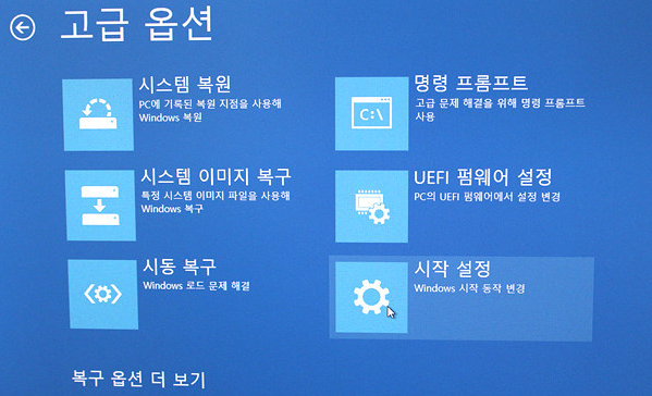 고급옵션에서 시동복구 해주시면됩니다
