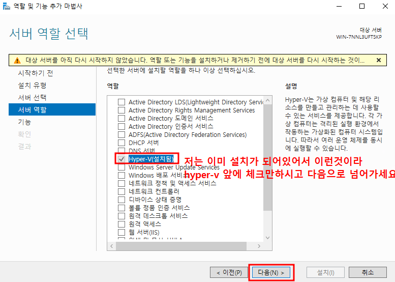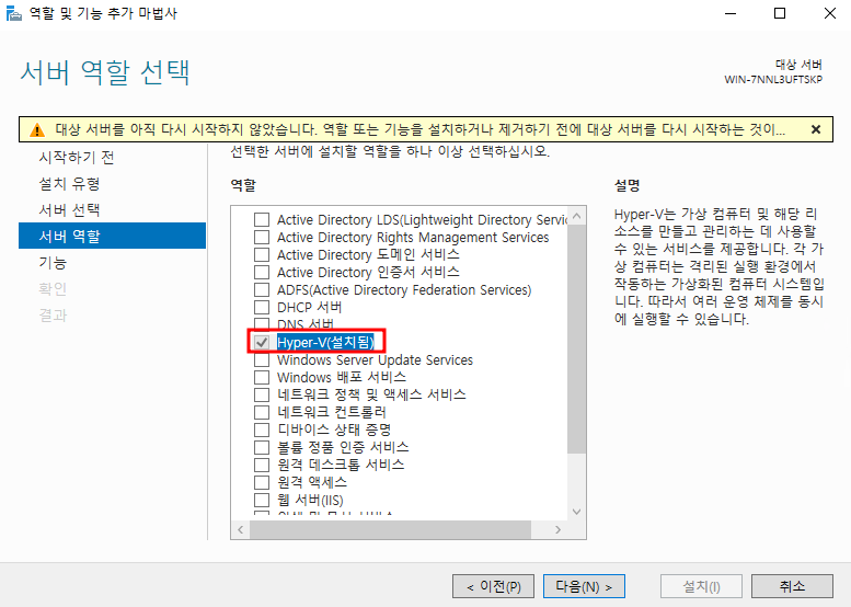 윈도우 서버 2019 하이퍼v 활성화 방법 / windows server 2019 hyper-v