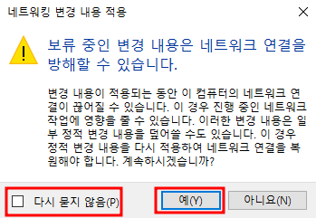 원격으로 서버 셋팅중이신분들은 이부분에서 인터넷이 끊겨서 당황하실수 있습니다 기다리시면 자동연결됩니다